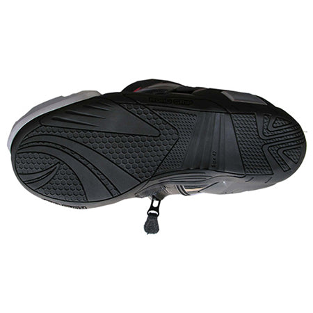 TPU moulded plastic protectors are in place at the ankle and the shin for impact resistance. A tough touring sole give grip and support, and plastic gear pad protectors and suede leather heat protectors keep the boot safe from the bike as you ride.