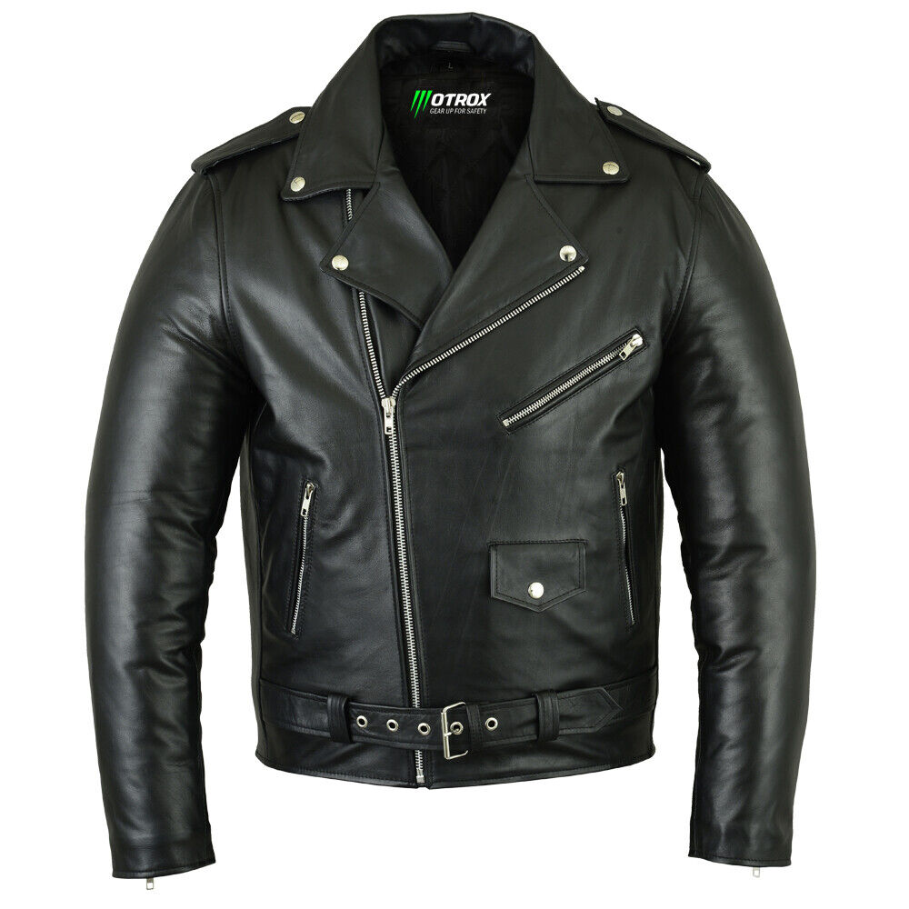 Welcome to our Famous Marlon Brando style leather jacket, constructed with two different types of Leathers, 1. top grain Cowhide Leather & Soft Sheepskin Leather. Exclusive to us! This popular design was originally showcased in the movie classic of the 50s “The Wild One”!