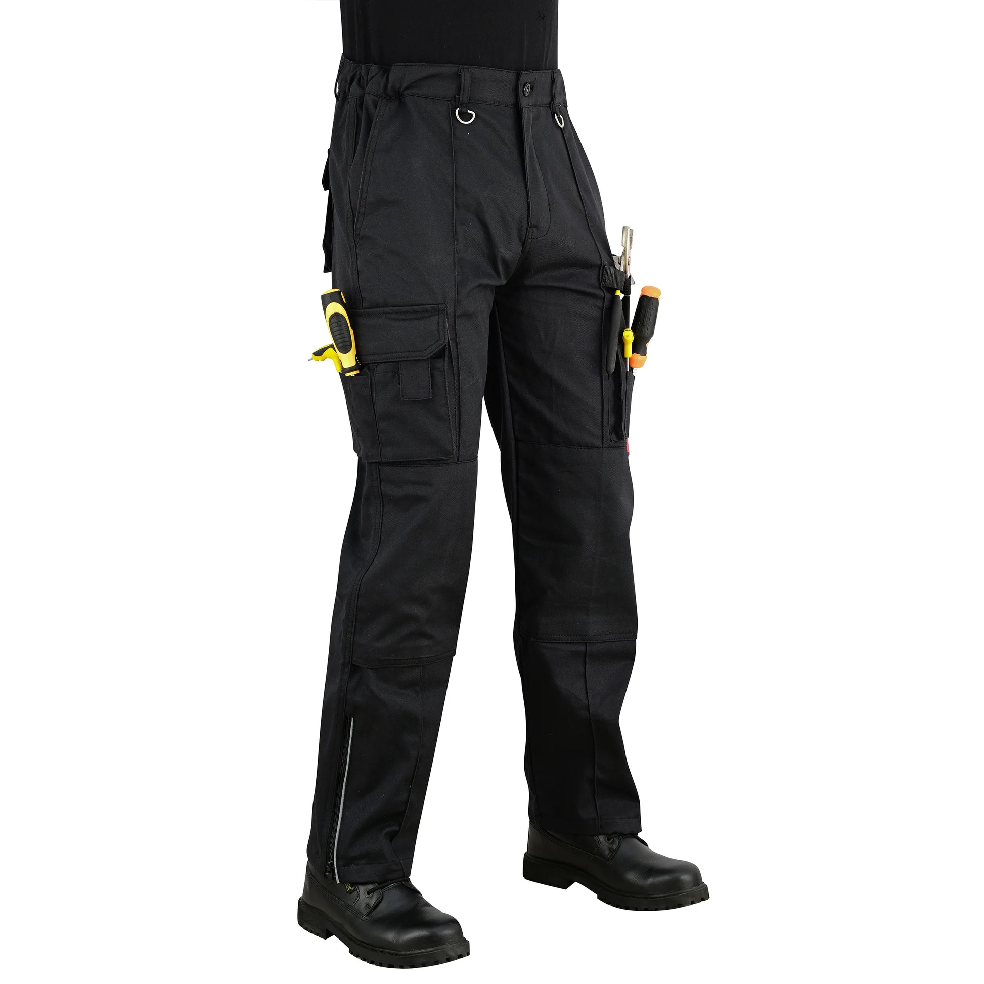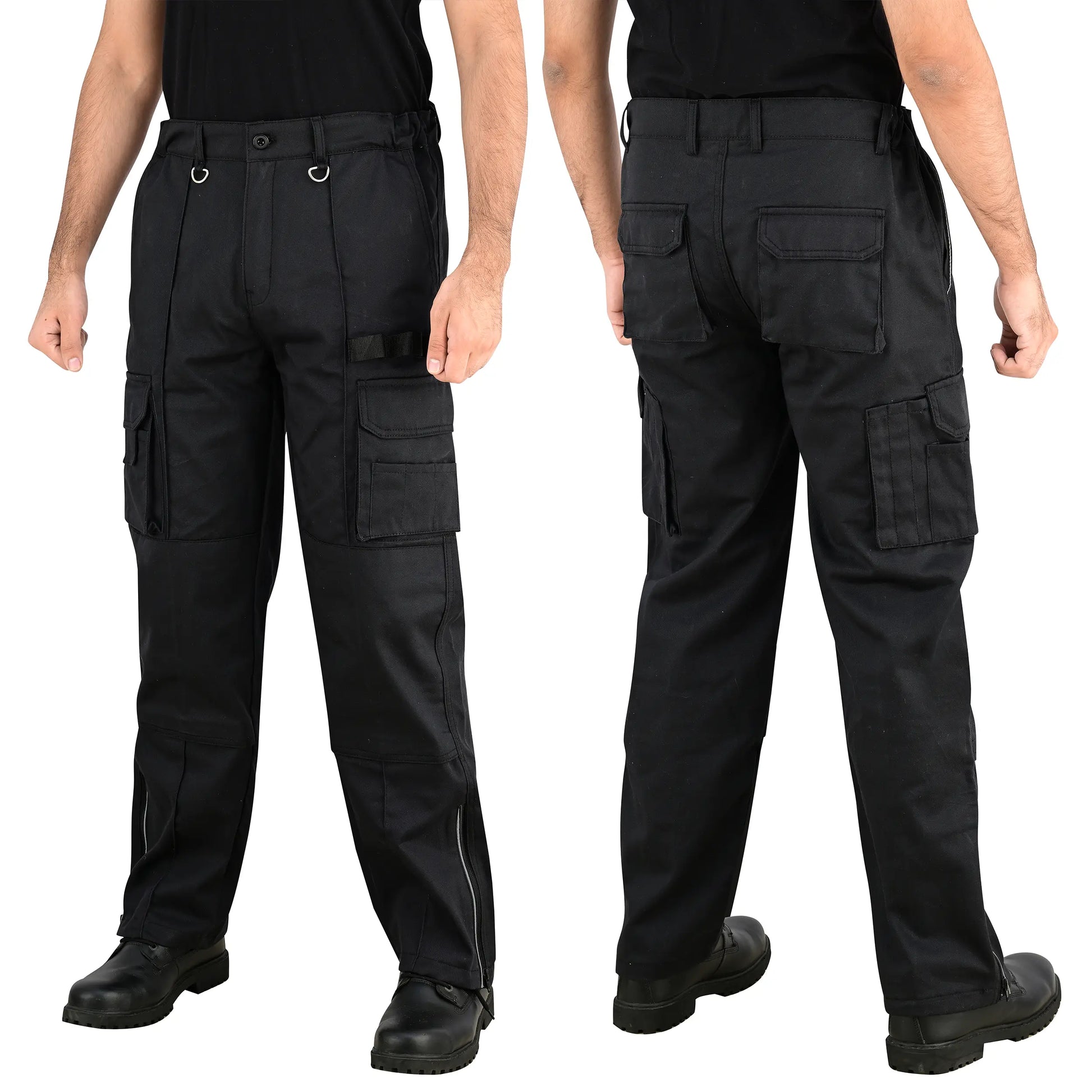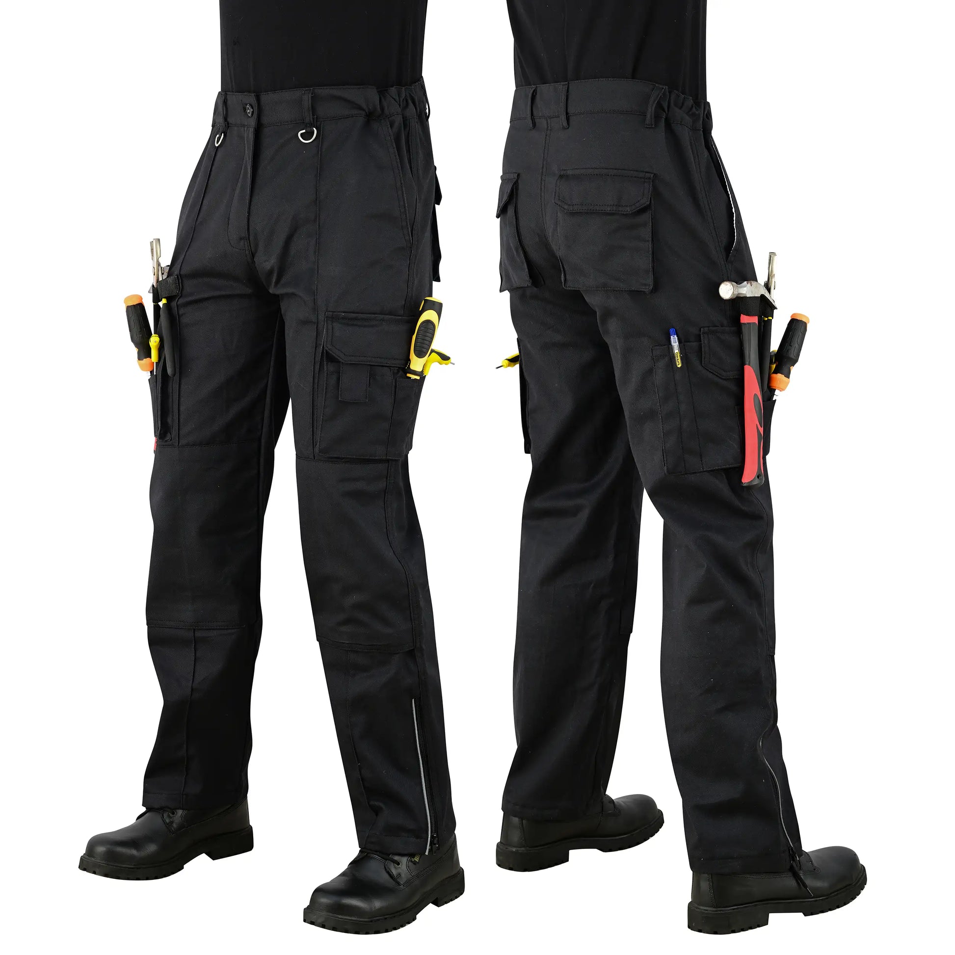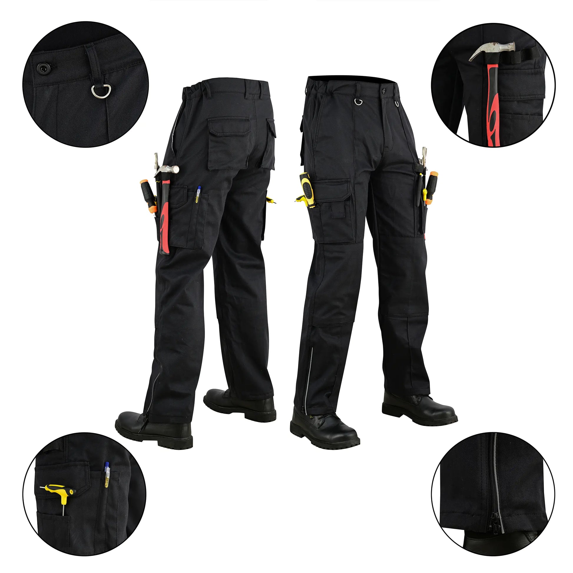 Men Cargo Combat Work Trousers with Knee Pad Pockets - Black
