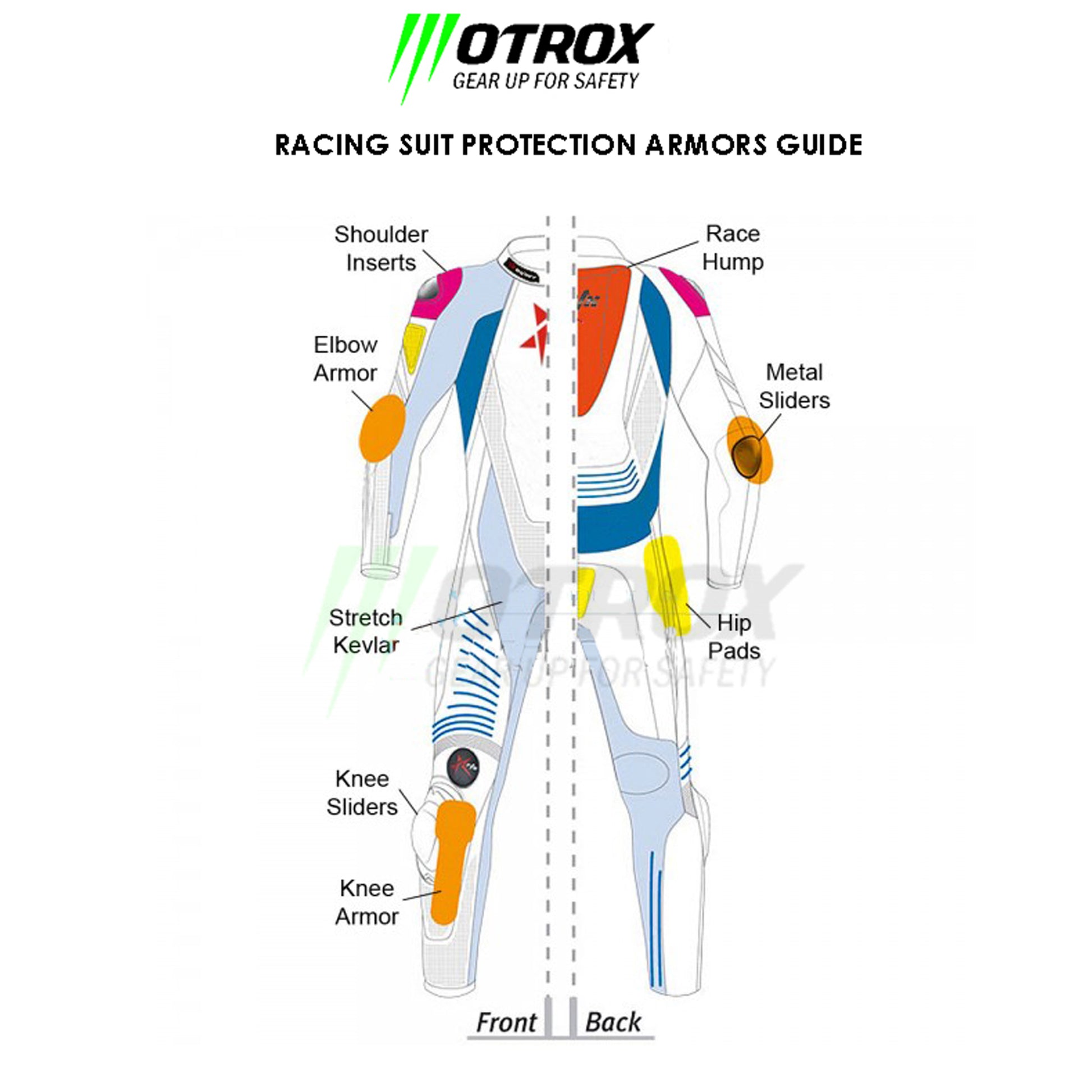 - Sliders: Replaceable knee sliders with strong Velcro for track use.